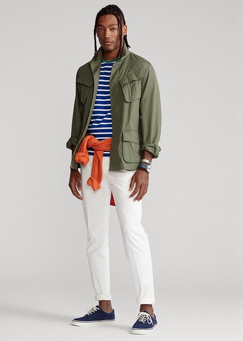 This suit jacket merges a utilitarian-inspired signature with stretch cotton ripstop for a rugged take on tailoring.
