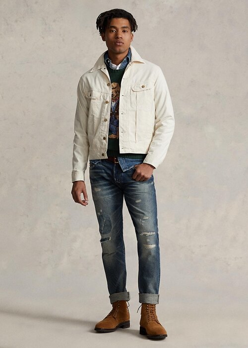 White Men’s Ralph Lauren Polo Bear Embroidered Trucker Jackets