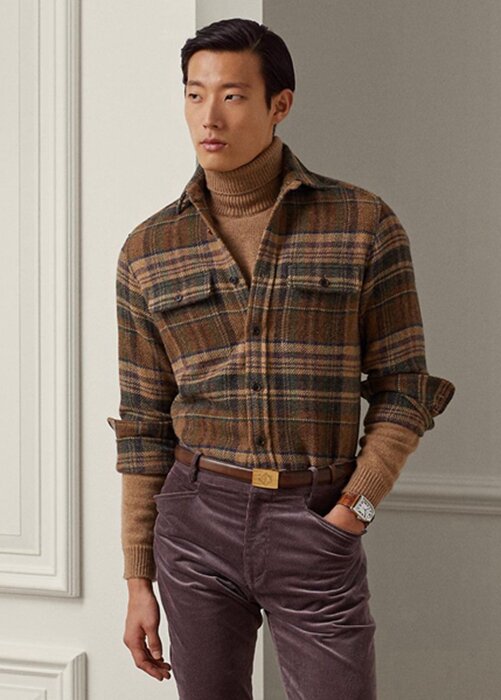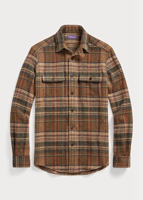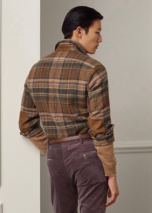 Brown Men’s Ralph Lauren Suede-patch Plaid Wool Tweed Shirts