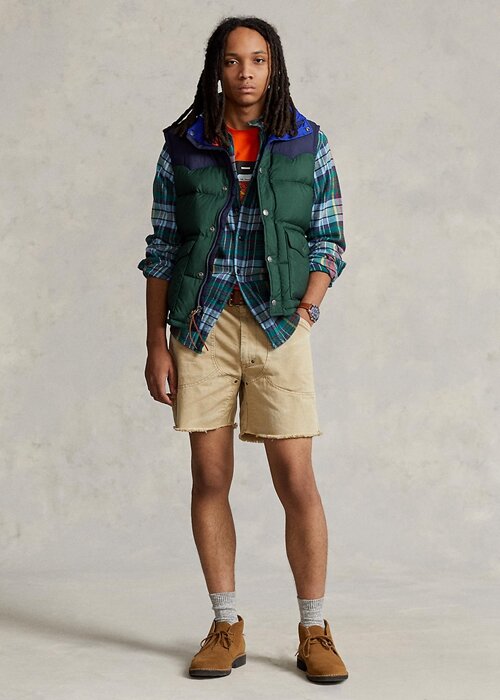 This vintage-inspired gilet is developed with 650-fill-power down and water-repellent ripstop fabric that is made with recycled polyester, reinforcing Ralph Lauren’s aim to create the highest-quality products while considering our environment. Its bold colour-blocking, signature label and Western-style yoke make it distinctly Polo.