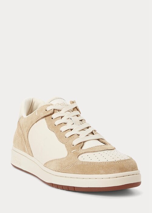Beige Men’s Ralph Lauren Court Leather-Suede Sneakers