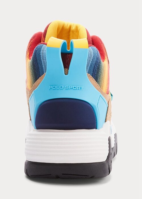Inspired by classic basketball shoes of the ’90s, the high-top silhouette of the PS100 is constructed with a substantial EVA midsole, TPU at the heel, and a hook-and-loop strap at the vamp. The multicolored ombré upper is paneled with suede and finished with iconic Polo Sport graphics.