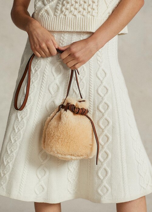 Honey/Cream Women’s Ralph Lauren Shearling Mini Bellport Bucket Bags
