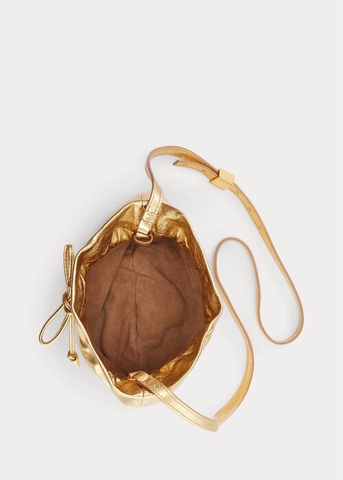 Our signature Pony, in foil-embossed and cutout form, defines the iconic look of this drawstring purse, which is rendered in Italian leather with a light weight and a metallic finish.