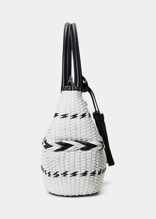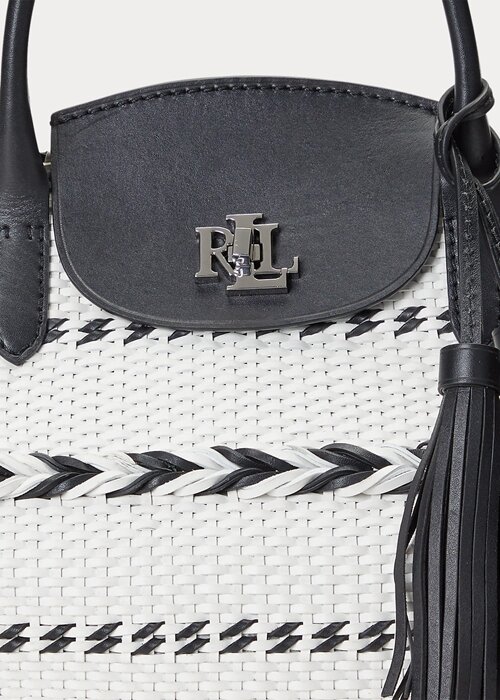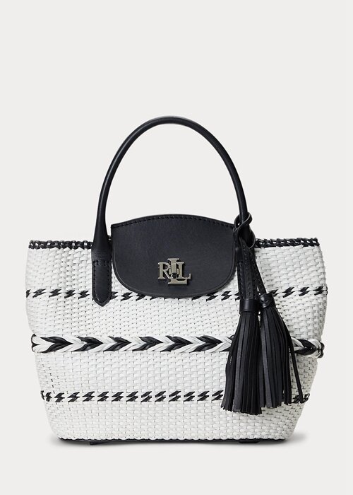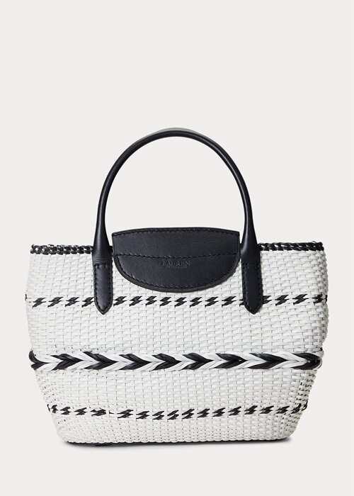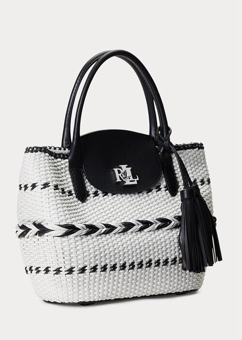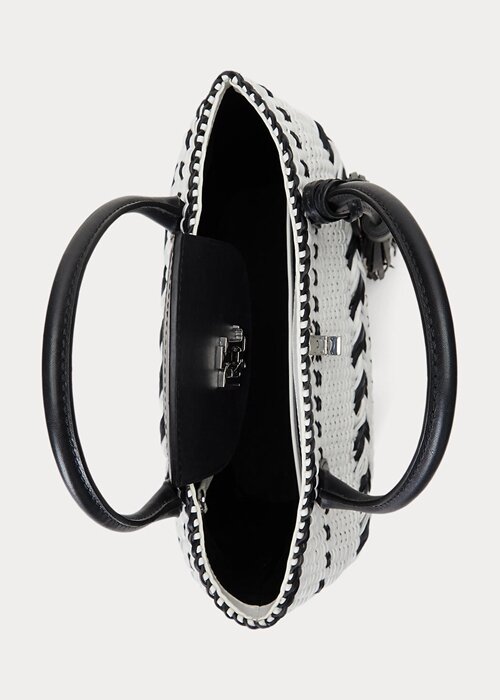 Black/Snow White Women’s Ralph Lauren Geo-Motif Woven Leather Large Perri Tote Bags