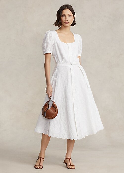 White Women’s Ralph Lauren Eyelet-Embroidered Linen Dress