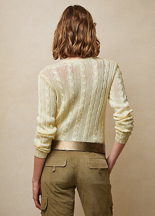 Cream Women’s Ralph Lauren Cable-Knit Silk Crewneck Sweaters