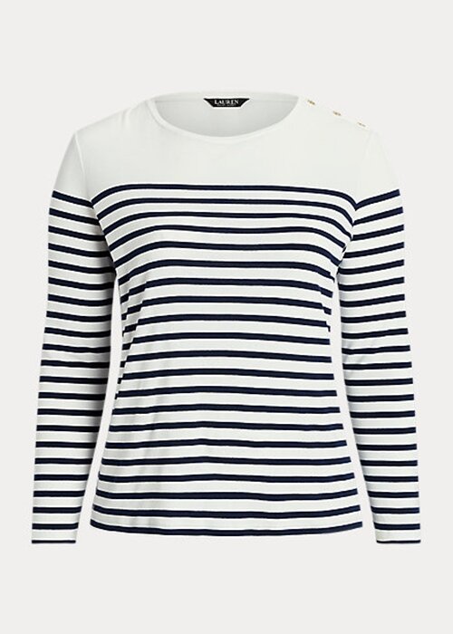 White / Navy Women’s Ralph Lauren Striped Cotton Long-Sleeve Tops