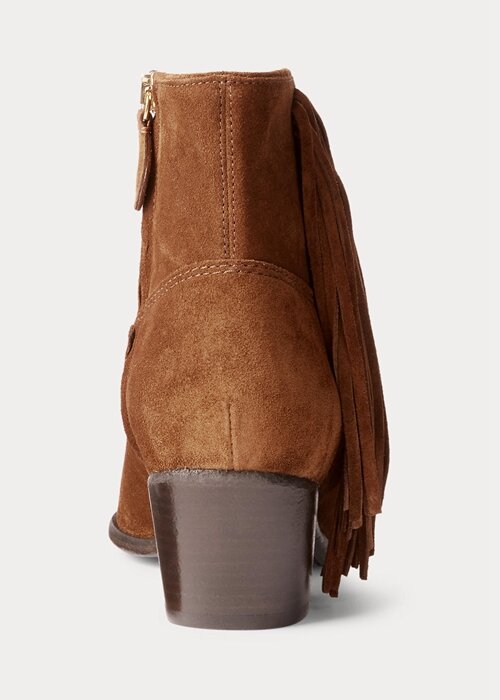 Brown Women’s Ralph Lauren Lucille Fringe-Trim Suedeie Boots