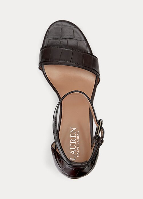 Brown Women’s Ralph Lauren Sylvia Embossed Leather Heels