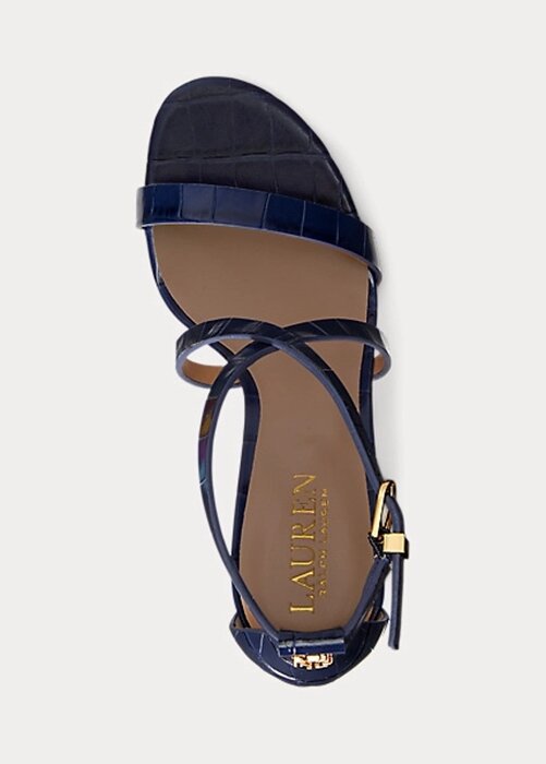 Navy Women’s Ralph Lauren Gabriele Embossed Leather Sandals